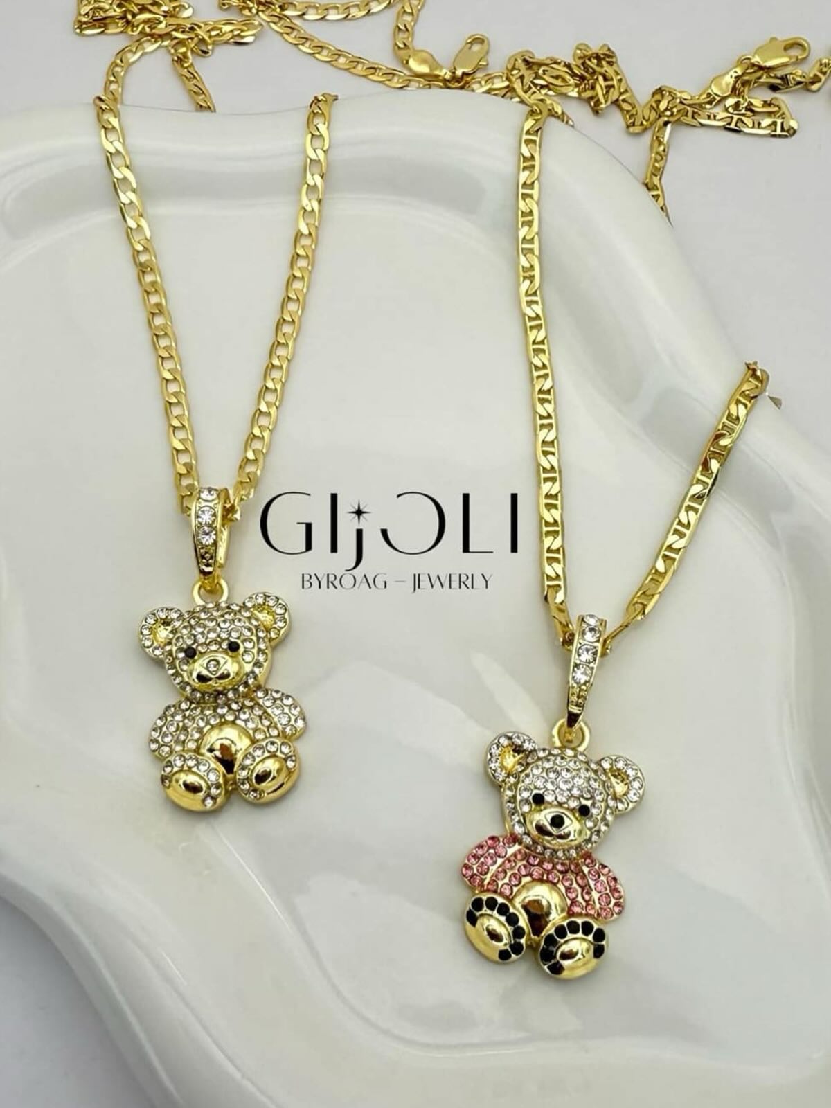Cadena gg con charm de osito 🧸 agrega un toque adorable y brillante a tu look.