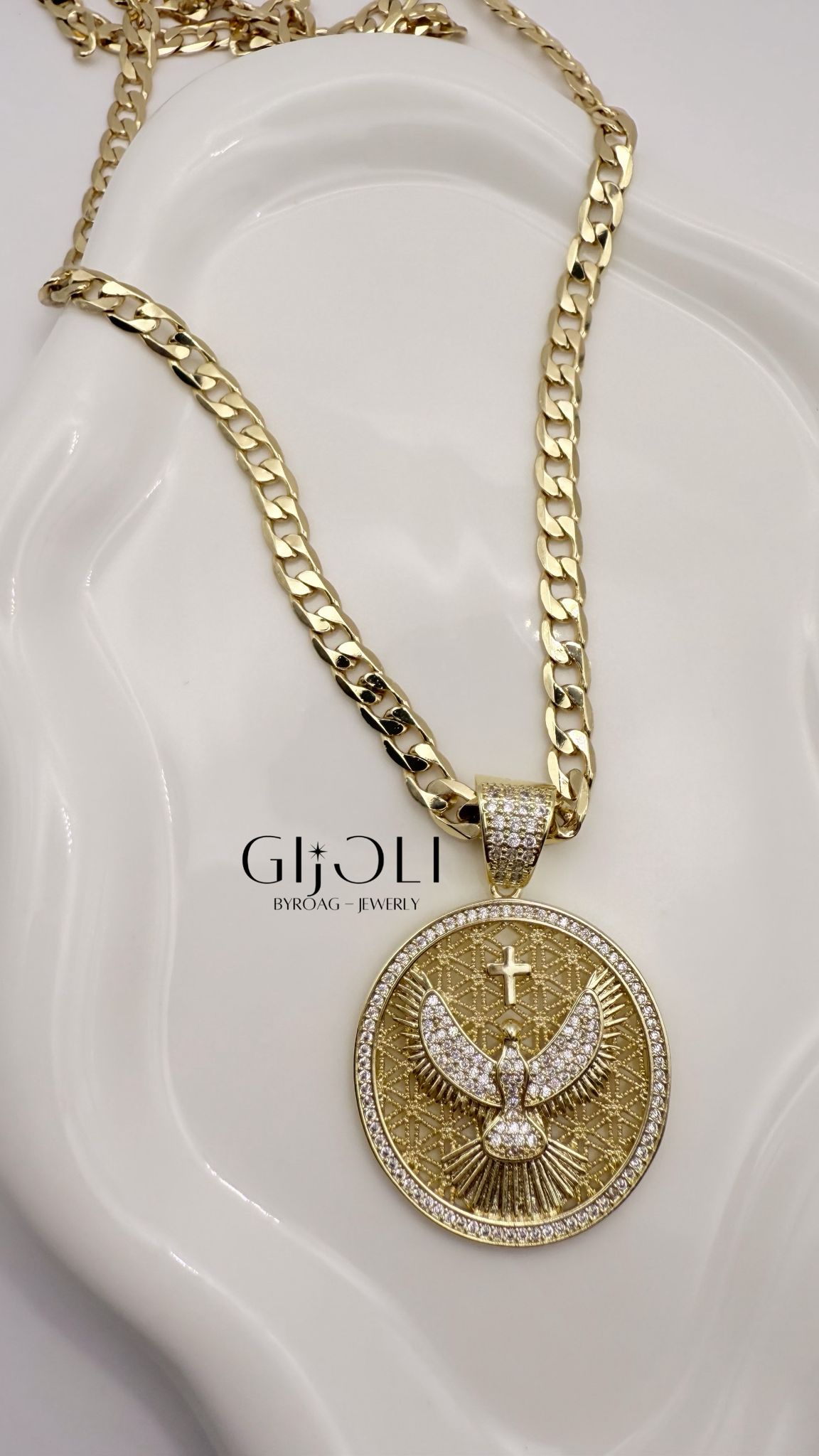 Material: stainless steel con tres capas de oro 14k, resistente al uso diario.