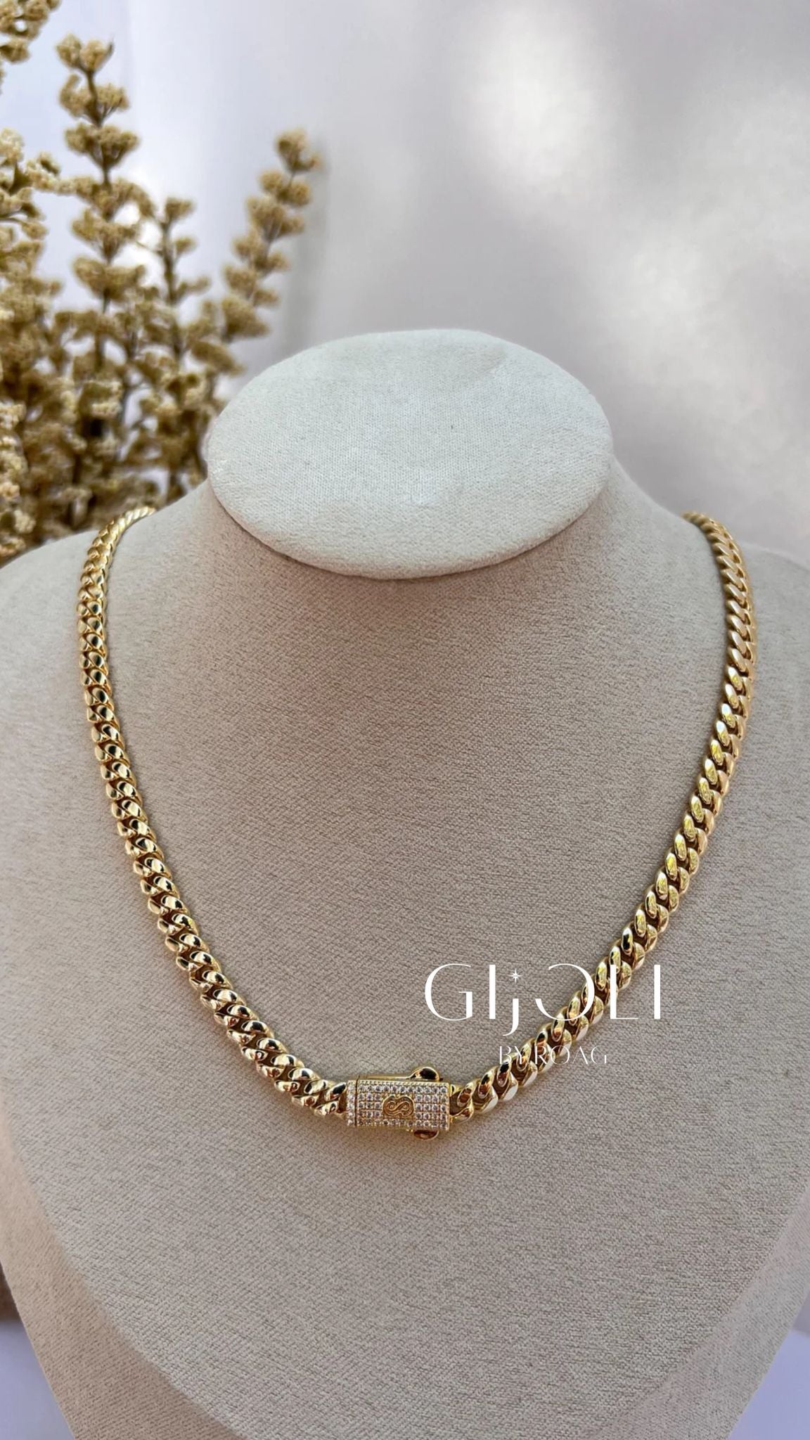 Material: stainless steel con tres capas de oro 14k, resistente al uso diario.