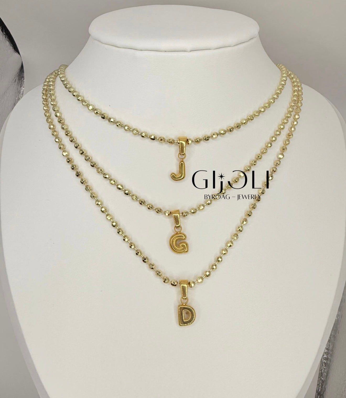 Cadena dorada de balines size 16 con medalla de inicial bubble delicada y perfecta para combinar con todos tus outfits
