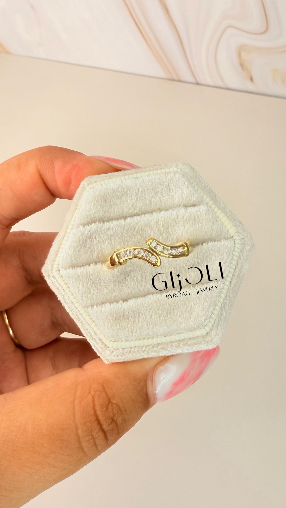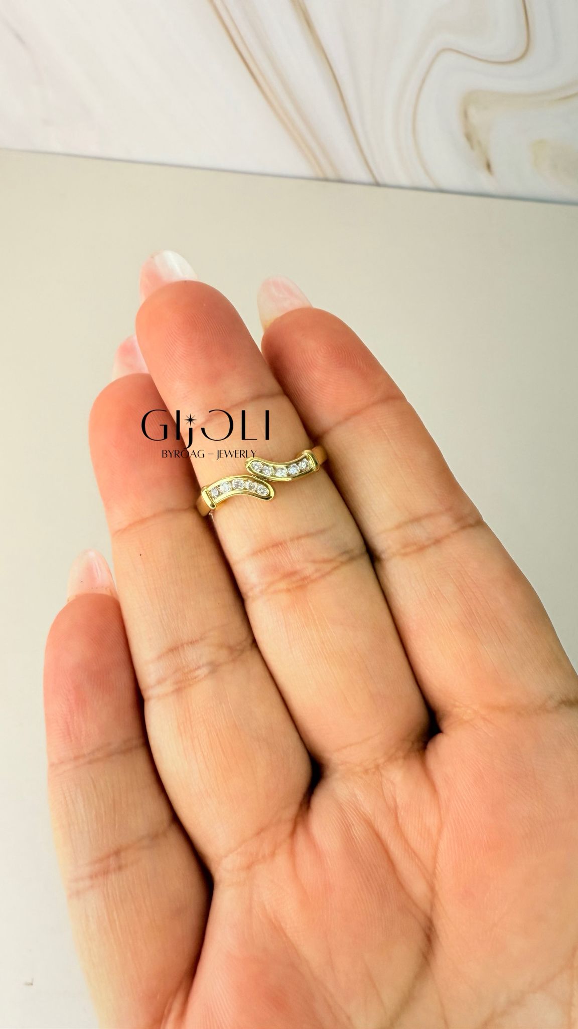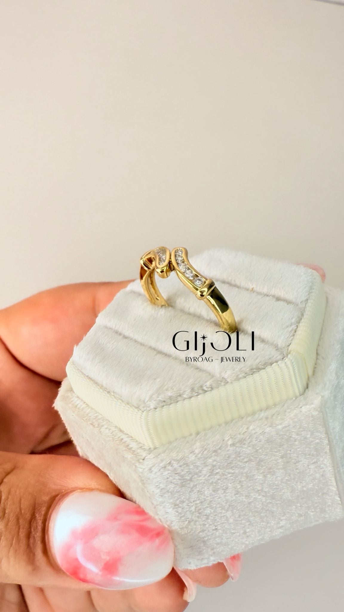 Sortija con detalles en zirconia de fantasía bañada con 3 capas de oro 14k