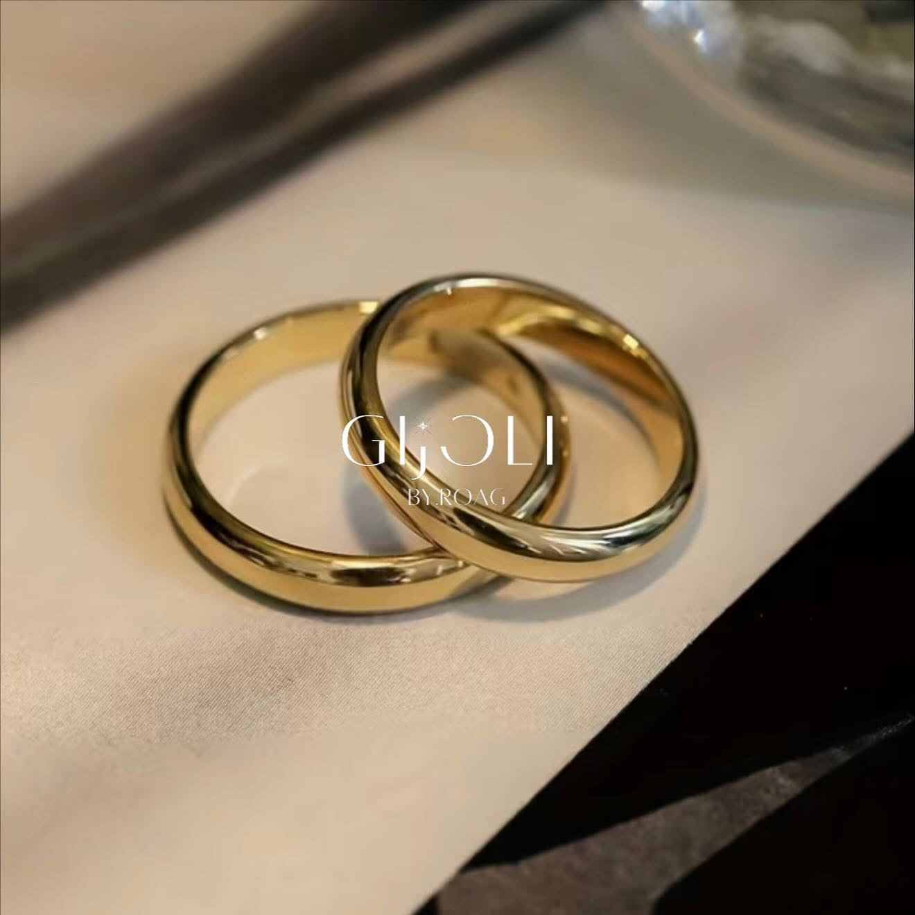 Un par de promesas forjadas en oro. Estas argollas clásicas y brillantes son el símbolo perfecto de un amor que perdura y se fortalece con el tiempo.