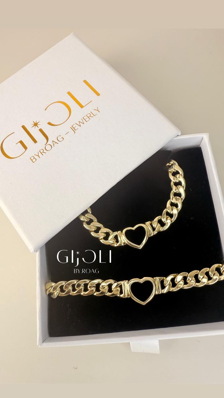 Set latido dorado es ideal para todo tipo de outfit, es una cadena cubana con diseño de corazón hueco, un detalle que lo hace único