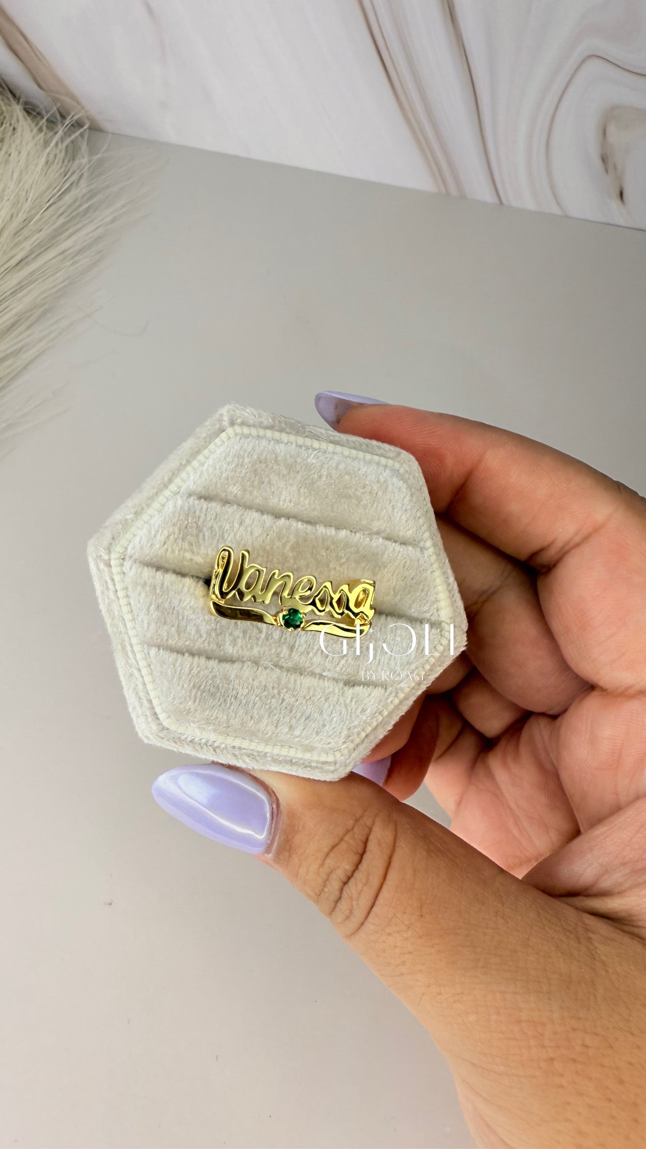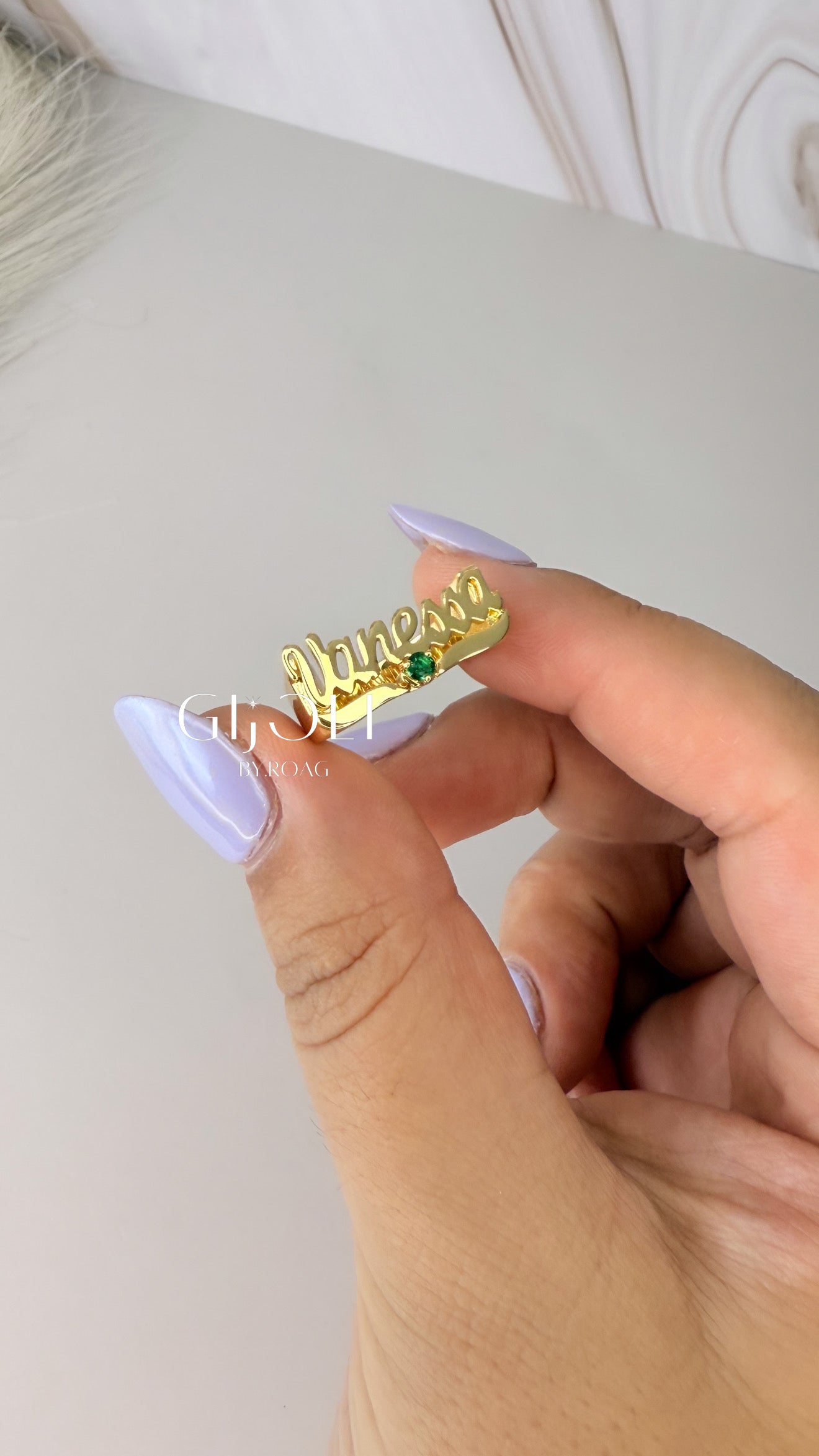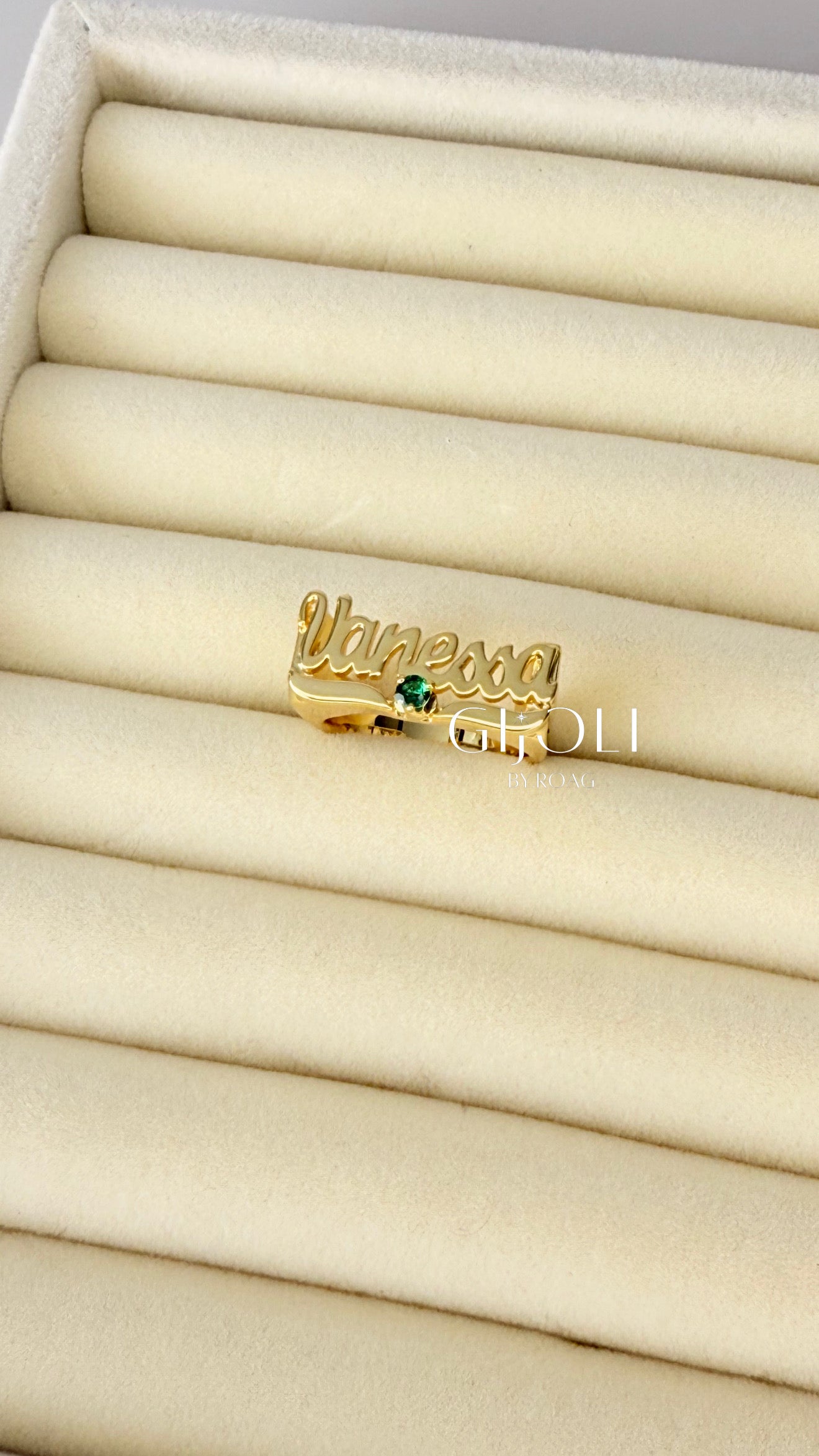 Una joya única que lleva grabado tu nombre y la piedra del mes de tu cumpleaños dándole un top de color y un toque único.
