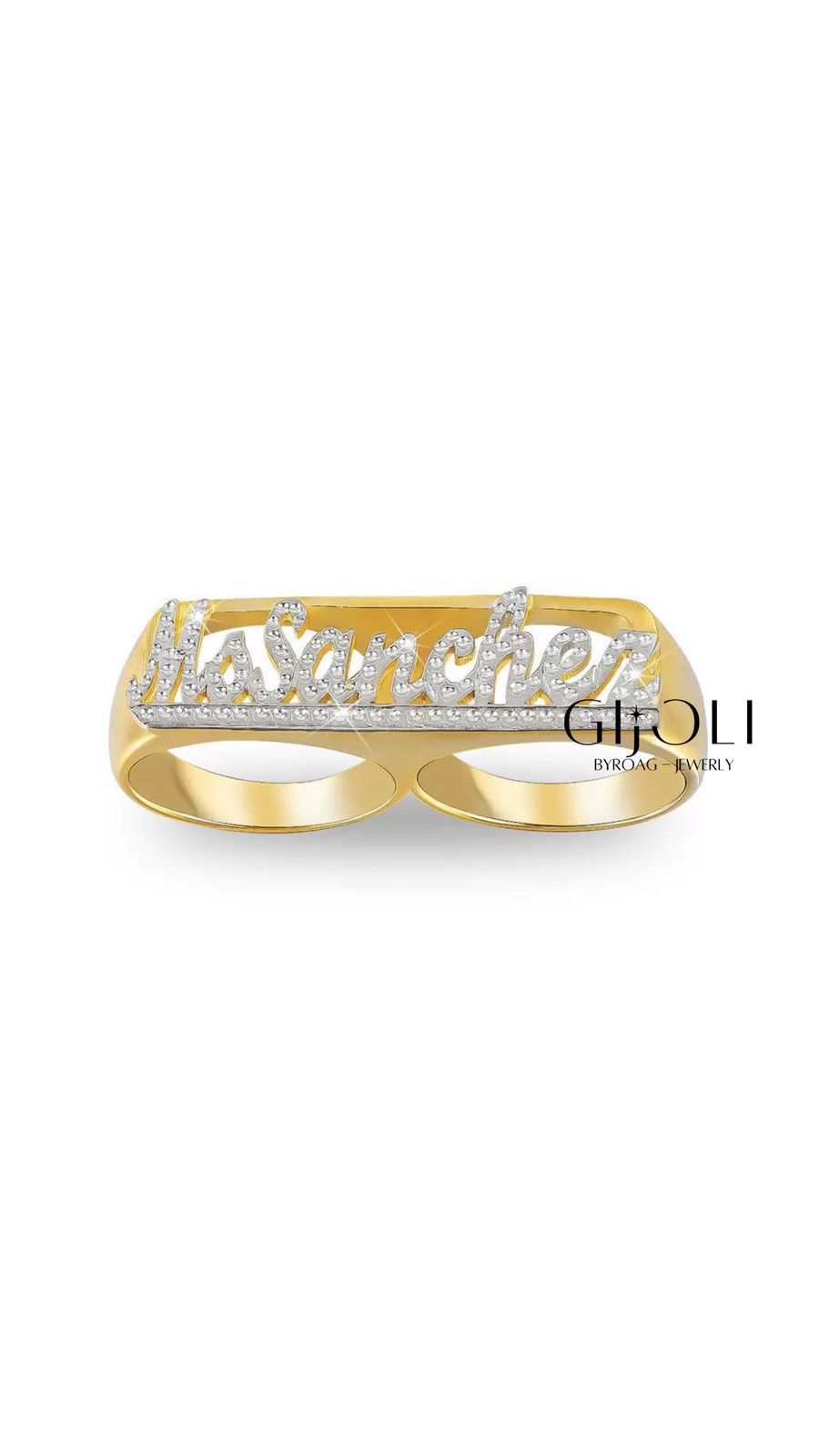 Un diseño único que combina elegancia y actitud. Esta sortija doble dedo está hecha para resaltar, personalizala con el nombre o palabra que elijas.