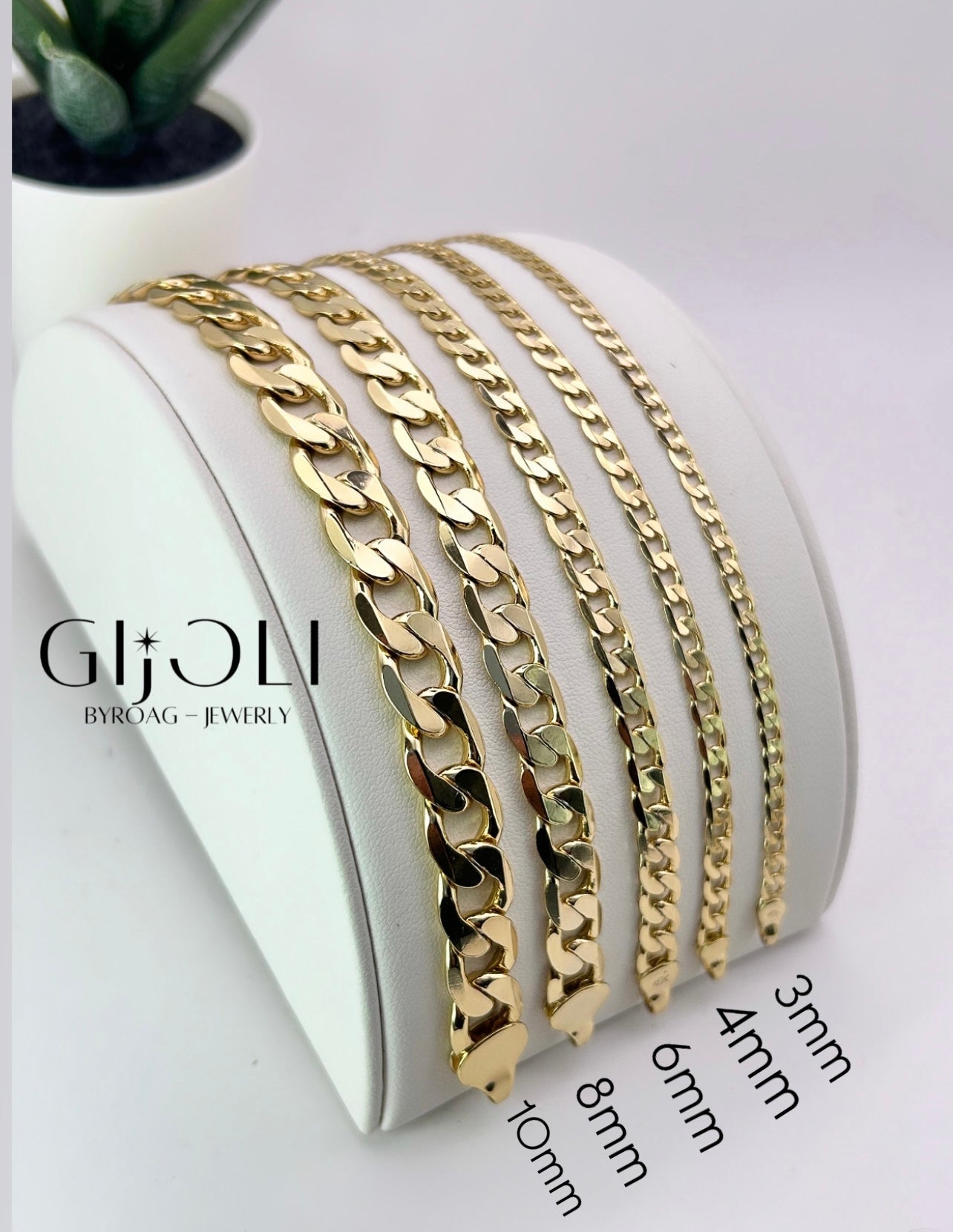 Tobilleras estilo cubana laminada en oro 14k de alta calidad, no pierden color y son resistentes al agua