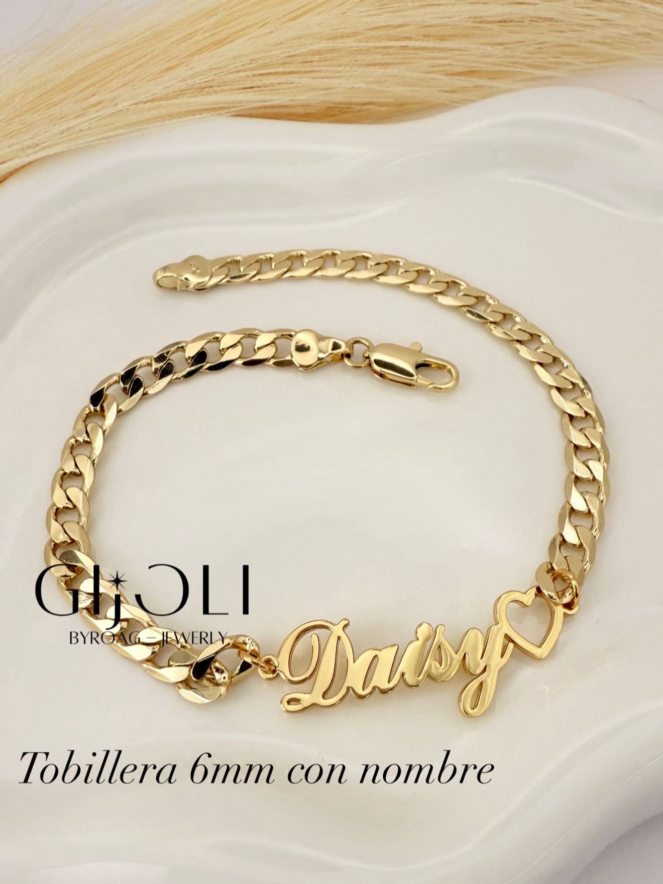 Tobillera eslabón cubano de alta calidad con nombre, size 10 de largo y 6mm de ancho